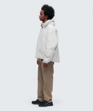 近年の日本の気候や、レイヤードし易さ、収納性に配慮し中綿量を調整することで、オーバーサイズながら膨らみすぎないスッキリしたシルエットと、表面にロゴを入れないことでよりシンプルで洗練されたデザインに。